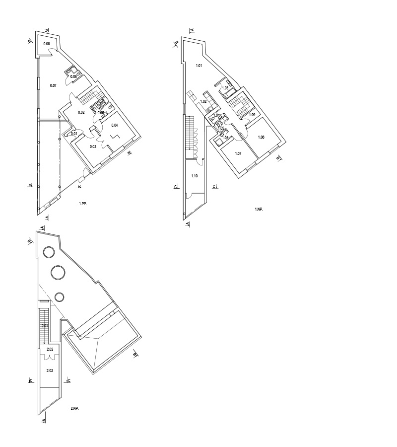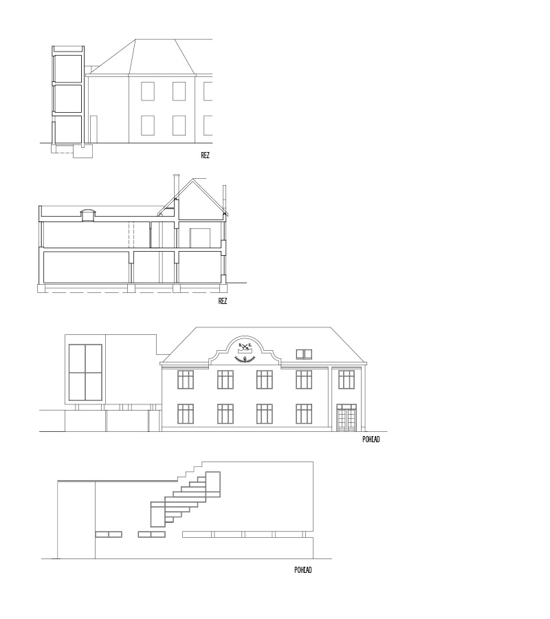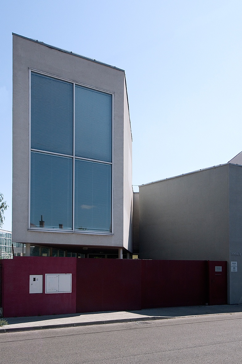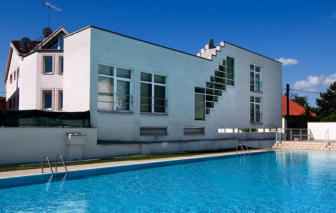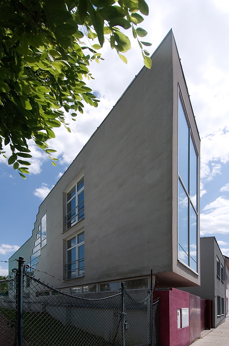 Right next to the Balneotherapy building of the Military Medical Institute an old urban villa was situated. Half of the villa was owned by the investor and needed reconstruction and on the neighbouring open land a new building was built. In this way the house with the historical court gained an atypical but powerful partner. The layout of the original villa in the back section was enlarged by a new apartment, part of which is raised on pillars and dynamically juts out towards the street. As a result, it was possible to successfully use this less than optimal triangular plot of land. Between the old and the new facility arose a protected courtyard. A clinic is situated on the ground and first floors and an apartment fills the new building.
