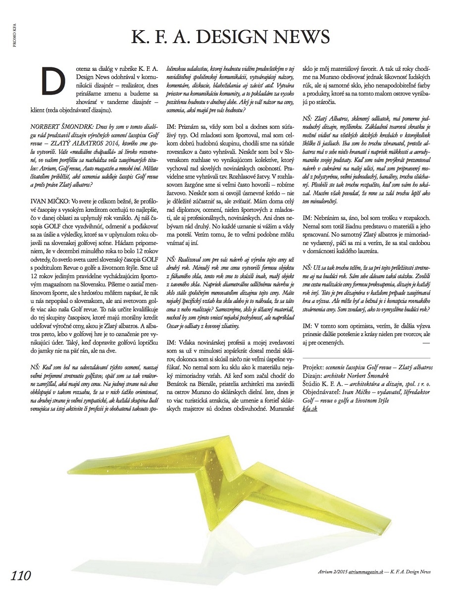 KFA DESIGN NEWS / ZLATÝ ALBATROS